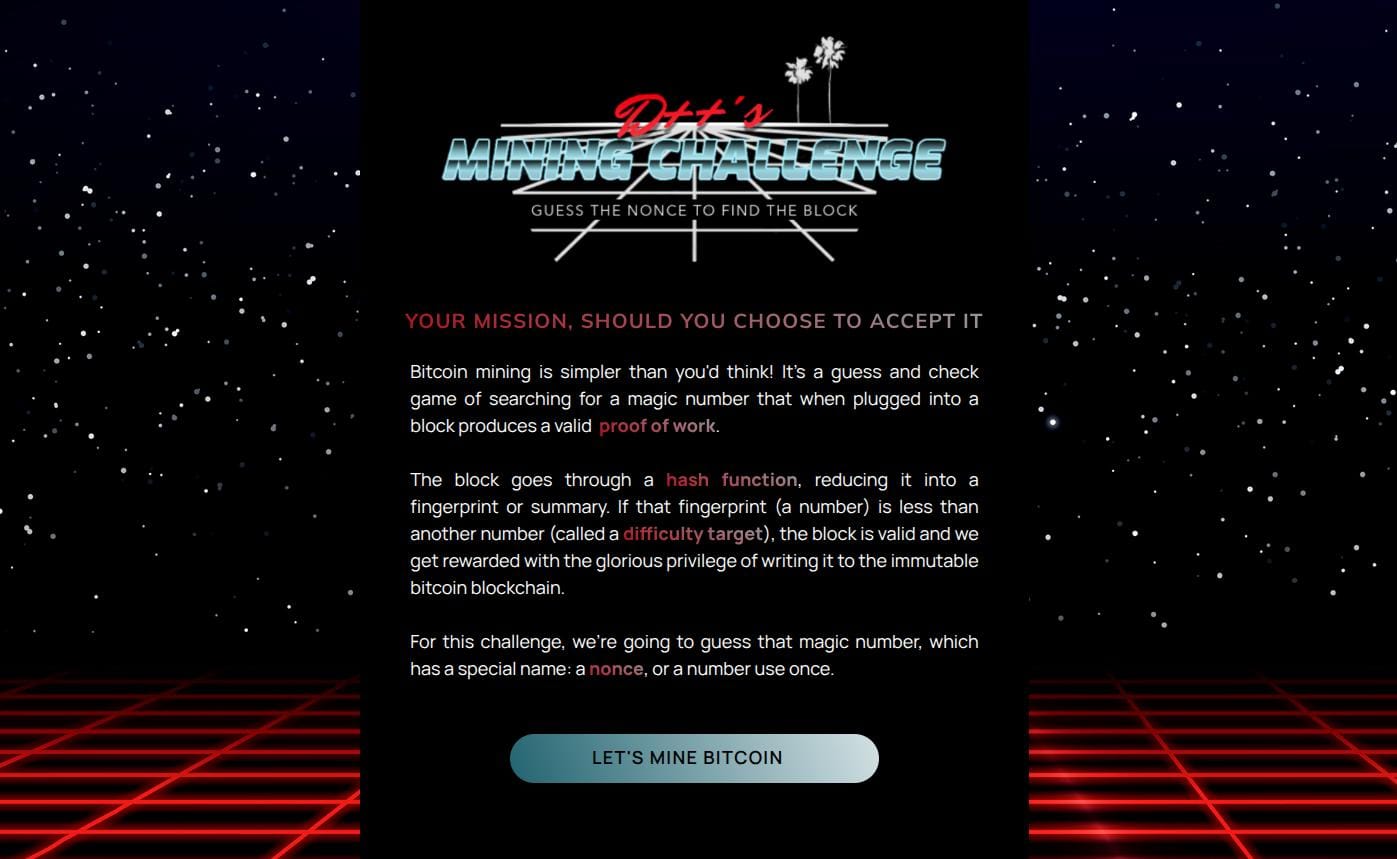But back to mining bitcoin, on her website, we can find a Bitcoin Mining Simulator that makes the mining process interactive and fun;