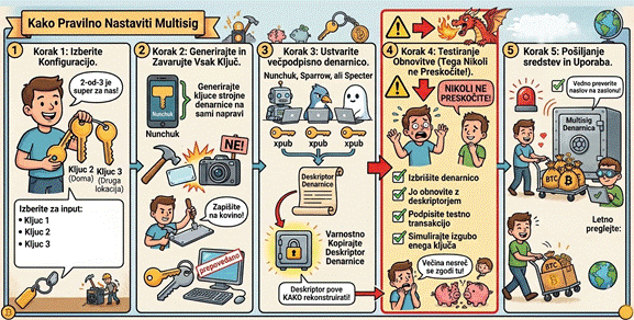 Bitcoin samoskrbništvo in multisig vključujeta resna tveganja. Vedno temeljito testirajte svojo nastavitev, preden pošljete kakršna koli sredstva.
