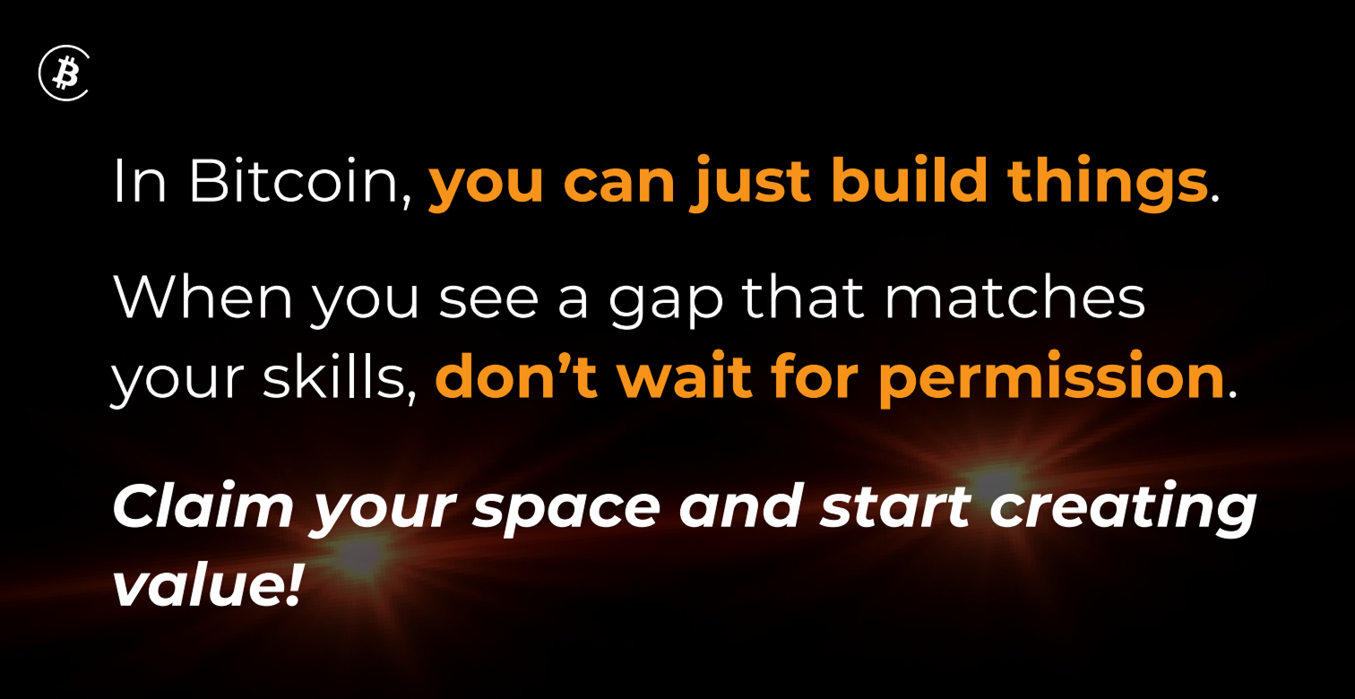 Bitcoin isn't just a protocol, but a living ecosystem. It needs builders in every sense of the word—including storytellers, educators, designers, accountants, salespeople, analysts, organizers, artists, HRs, and different types of 'operators'—just as much as it needs engineers and technical experts.