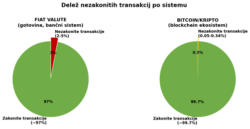 Kljub pogostim kritikam, podatki neodvisnih organizacij, kot so Chainalysis, Europol, FATF in Združeni narodi (UN), kažejo povsem drugačno sliko. Ta analiza primerja tri ključne vidike nezakonitih finančnih aktivnosti: pranje denarja, utajo davkov in financiranje terorizma.